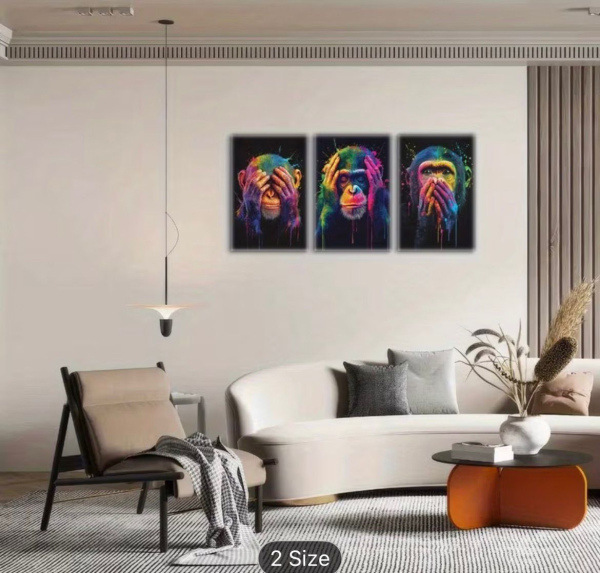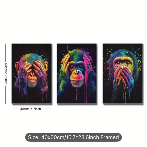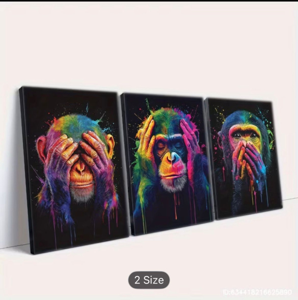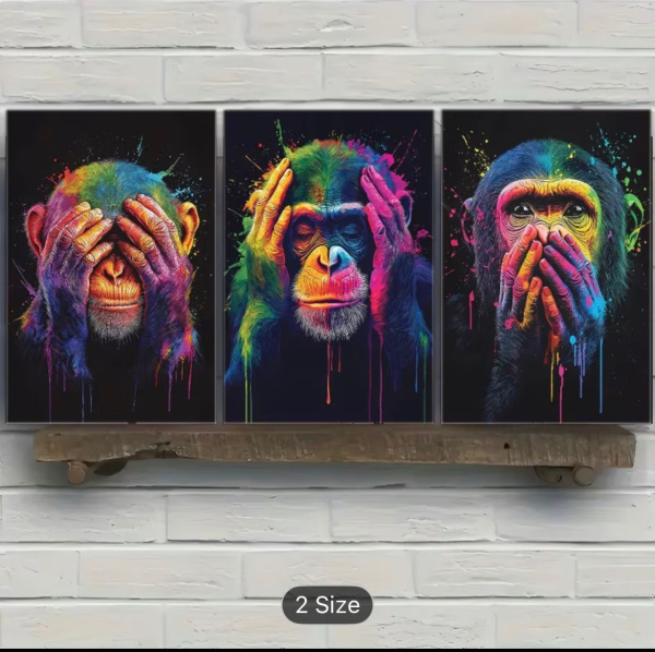 Original Three Wise Monkey Wall Decoration- 3 pieces, framed.