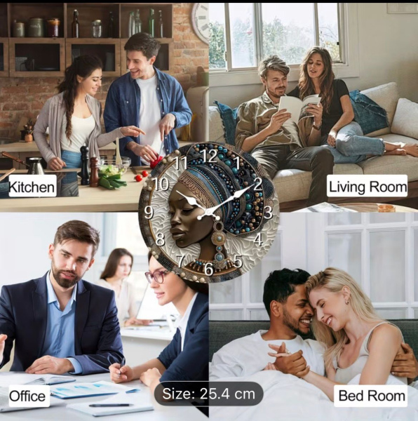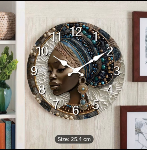 African Woman Head Wall Clock - Suitable for living room, Kitchen, Bedroom, Office, Shop and gifting
